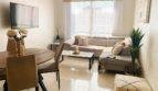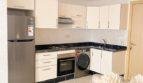 L’appartement se compose d’un salon ouvert sur la cuisine américaine, deux chambres et une salle de bain.